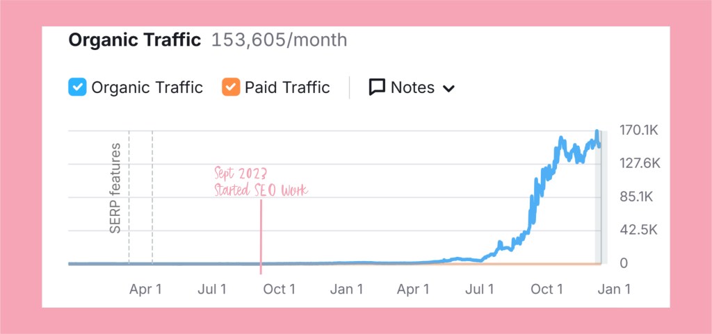 I started working on my small business’ SEO in September 2023 and started seeing real growth about 12 months later (see below image). SEO is not a quick fix and it will not bring thousands of visitors to your site overnight. It will, however, set you up long term and help you build your brand.